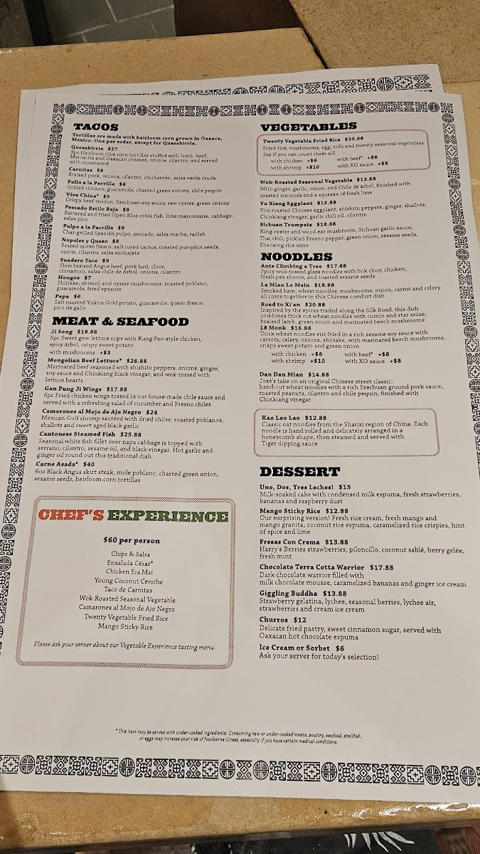 “ A mix of Chinese and Mexican food. Love the decoration and food is pretty good. Give 4 ⭐because some of the food portions are small, but most of them are very flavorful. The traditional dim sum is a must try, a little small but super tasty. Dan Dan noodle is small and so is the Vivian China taco. The road to xian and carne Asada taco are my favorite. ”